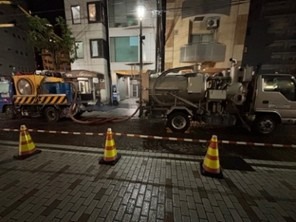 ウォ-タージェット工事で発生した濁水を吸引しました(横浜市中区)