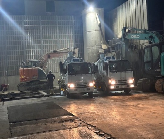 推進工事で発生した汚泥をバキューム吸引しました(横浜市港北区・夜間)