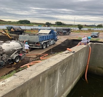 河川に流れてしまった工事現場の汚泥をバキュームで吸引しました(緊急)横浜市栄区
